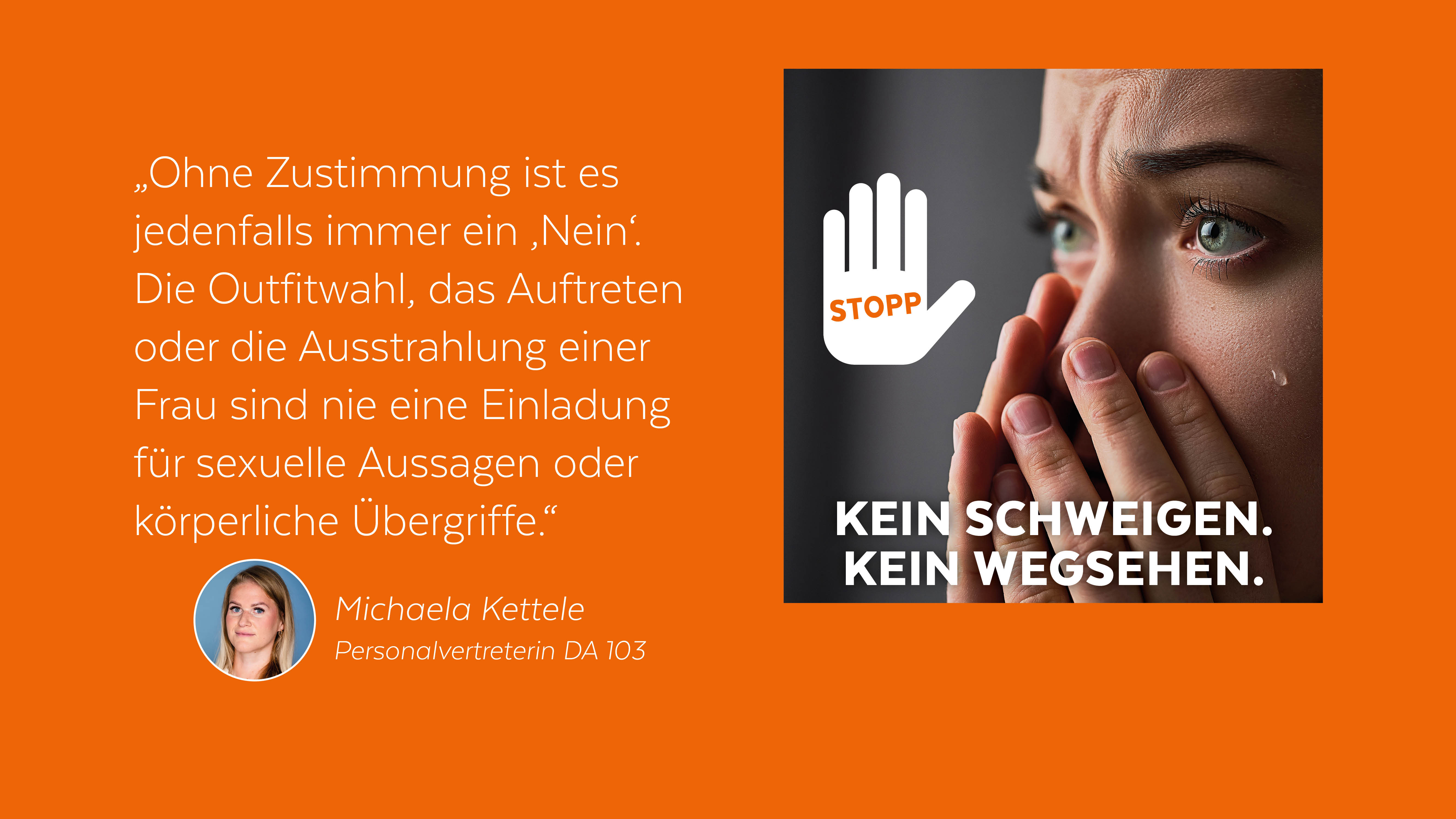 „Wer Gewalt ignoriert, stellt sich auf die Seiter der Täter. Nur wenn wir hinsehen, laut werden und handeln, schaffen wir eine Zukunft ohne Gewalt an Frauen!“